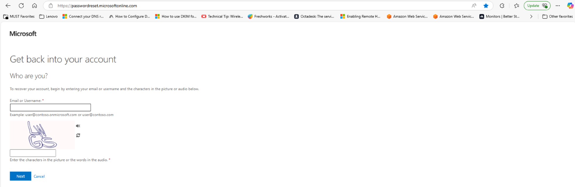 Visit the Microsoft Password Reset Portal: Microsoft Online Password Reset