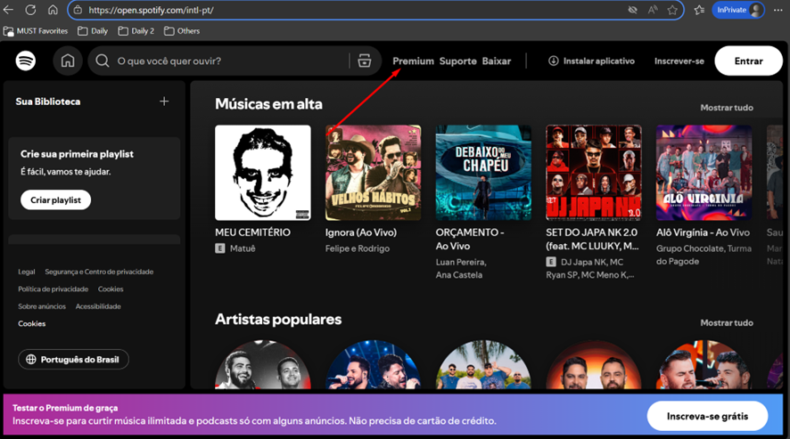 Dentro da página de planos, escolha a opção Premium Universitário.