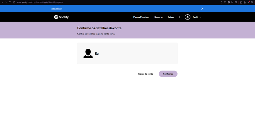 Confira as informações da sua conta do Spotify e clique em Confirmar.